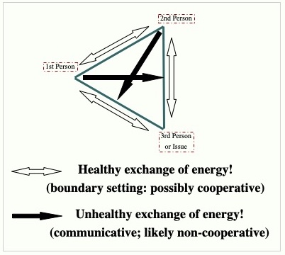 Second, healthy exchange in communication is direct. It may not always be pleasant (for example, the healthy expression of anger) but the long-term outcome is potential health. Unhealthy exchange crosses into the third limb; it generally is not cooperative (although the individual impacted may choose to cooperate, e.g., an employee being told what to do by an angry boss).