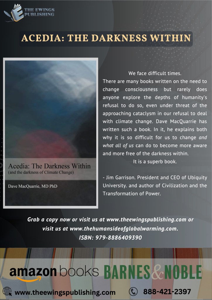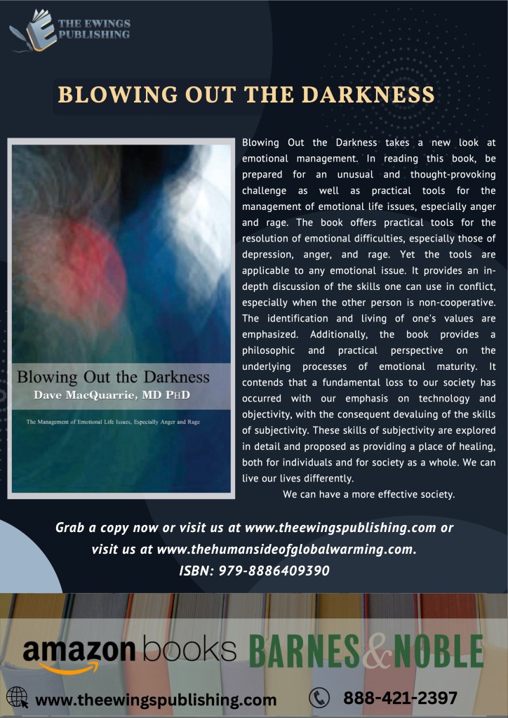 As part of it all, I am also re-editing and re-publishing my two books Blowing Out the Darkness: The Management of Emotional Life Issues, Especially Anger and Rage and Acedia, the Darkness Within: and the darkness of Climate Change with The Ewing Publishing, Metaire, LA (the books will be available at www.theewingspublishing.com shortly) — flyers below. Below the flyers are the links for where to purchase the books.